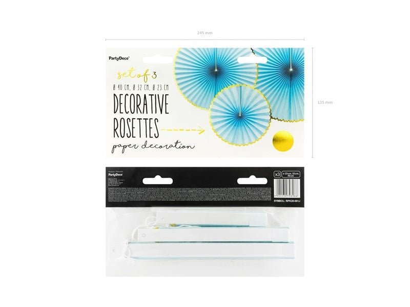 Papieren Waaiers Lichtblauw Goud Set 23-40cm 3 delig