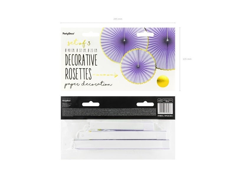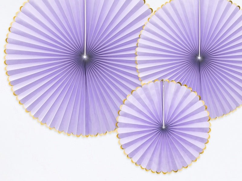Papieren Waaiers Lila Goud Set 23-40cm 3 delig