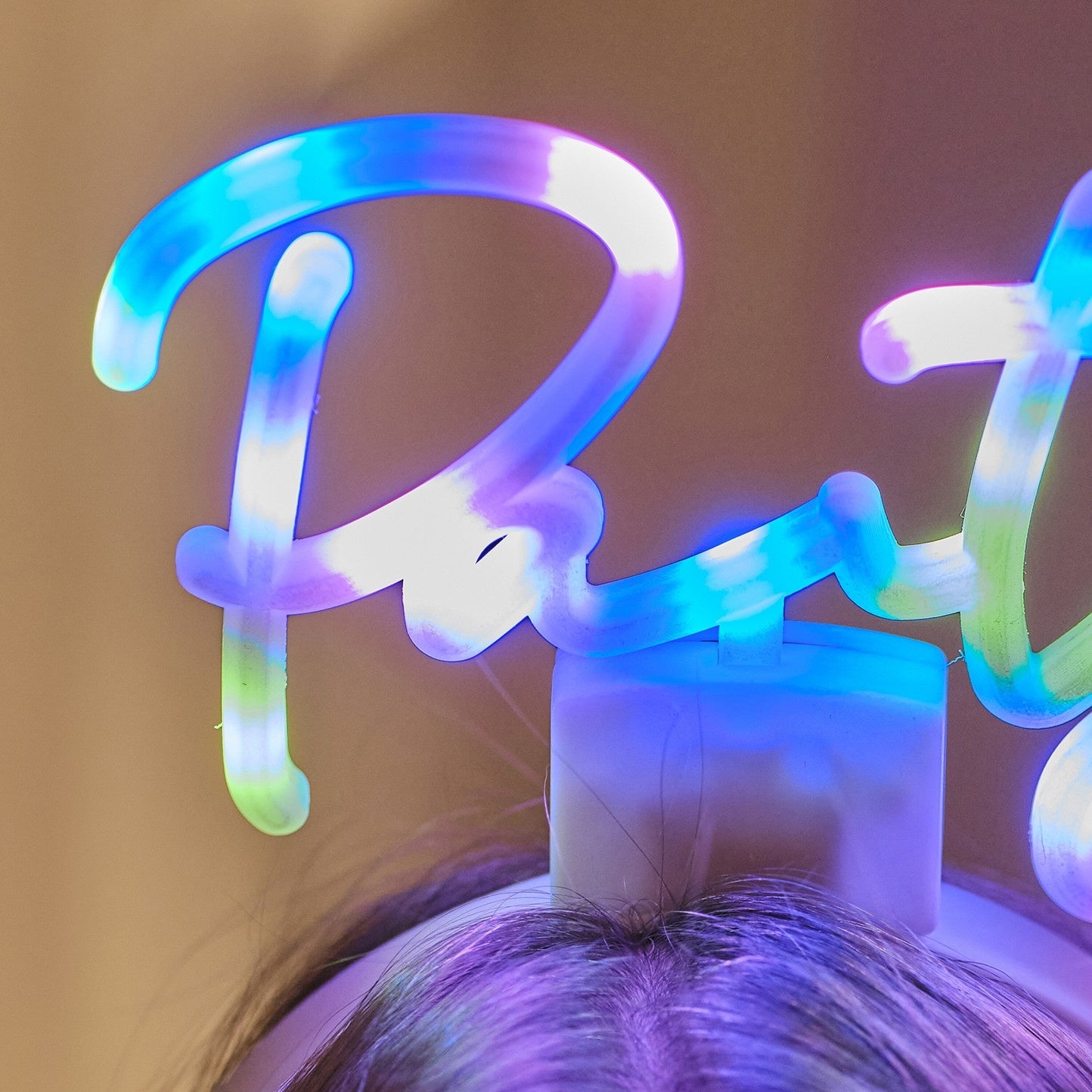 Ga helemaal uit met onze nieuwe regenboog oplichtende 'Party' hoofdband!