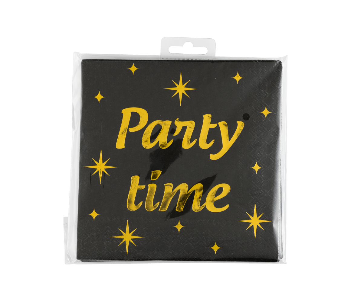 Deze classy party napkins - Party time zijn niet alleen praktisch, ze zijn ook nog eens erg leuk om een tafel feestelijk te decoreren. Deze servetten zijn (17 x 19cm) en er zitten 16 servetten in een pak. De classy party napkins zijn daarnaast perfect om te combineren met de feestversiering uit de classy collectie!