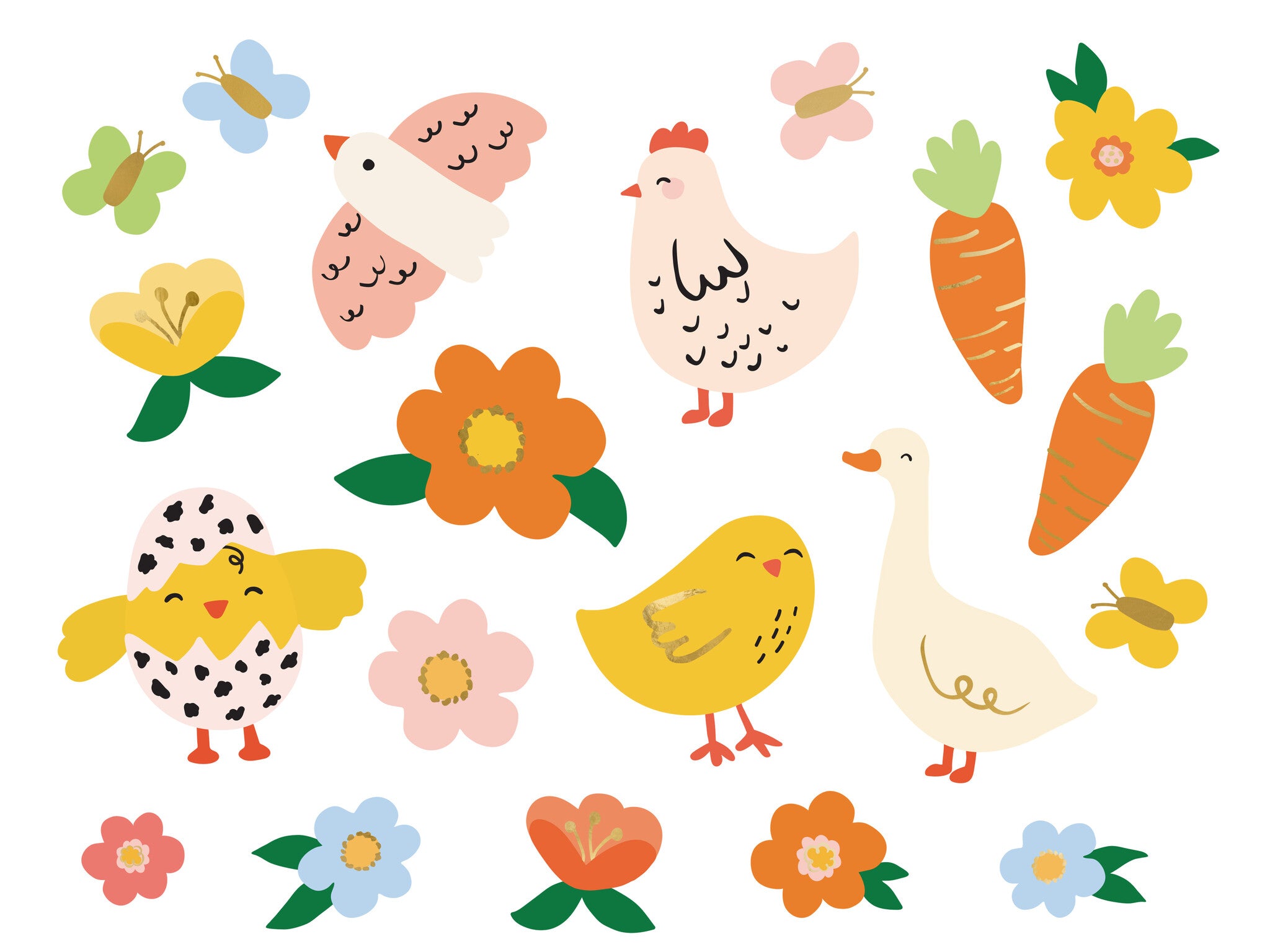 Afwasbare paastatoeages, mix van kleuren, set bevat 20 verschillende ontwerpen.