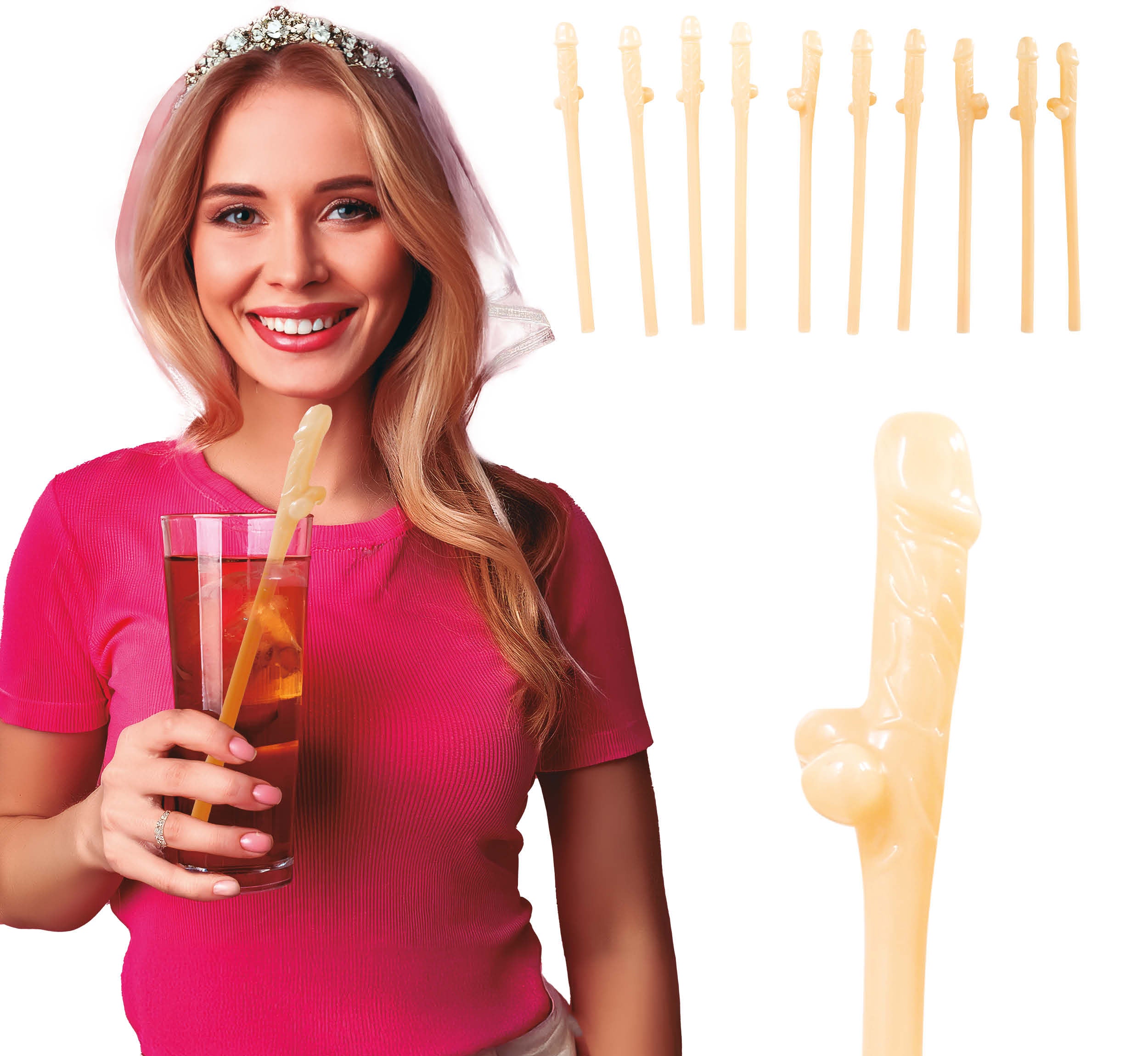 Deze grappige rietjes in de vorm van een penis zijn een leuke en opvallende accessoire voor vrijgezellenfeesten, verjaardagen of andere feestelijke gelegenheden. Gemaakt van stevig PVC en geschikt voor herhaald gebruik.