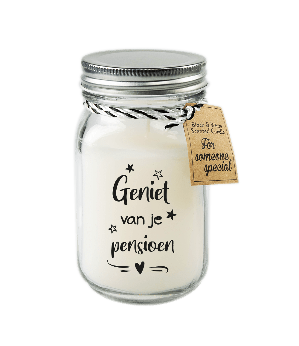 Deze zwart witte geurkaars met vanillegeur zit in een mooie glazen pot en brand ongeveer 80 uur. Zorg voor sfeer in huis met deze leuke Scented Candle!