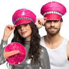 Steel de show tijdens carnaval, Pride of een festival met deze opvallende roze hoed met omkeerbare pailletten. Door de pailletten de andere kant op te strijken veranderen ze van kleur. Je maakt je party look helemaal af met deze shiny bling bling hoed.