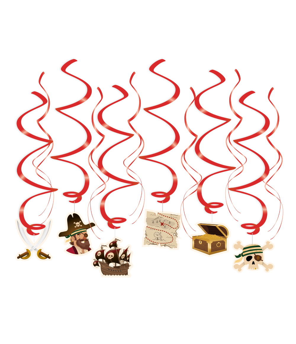 Een kinderfeestje is altijd speciaal en wat is er nou leuker dan om dit feestje leuk aan te kleden met de swirl decorations Pirates! De swirls zijn gemaakt van plastic en papier en zijn ongeveer 70 centimeter lang. Ze zijn uitstekend te combineren met de piraten ballonnen, vlaggetjes, letter banners en cocktail picks!