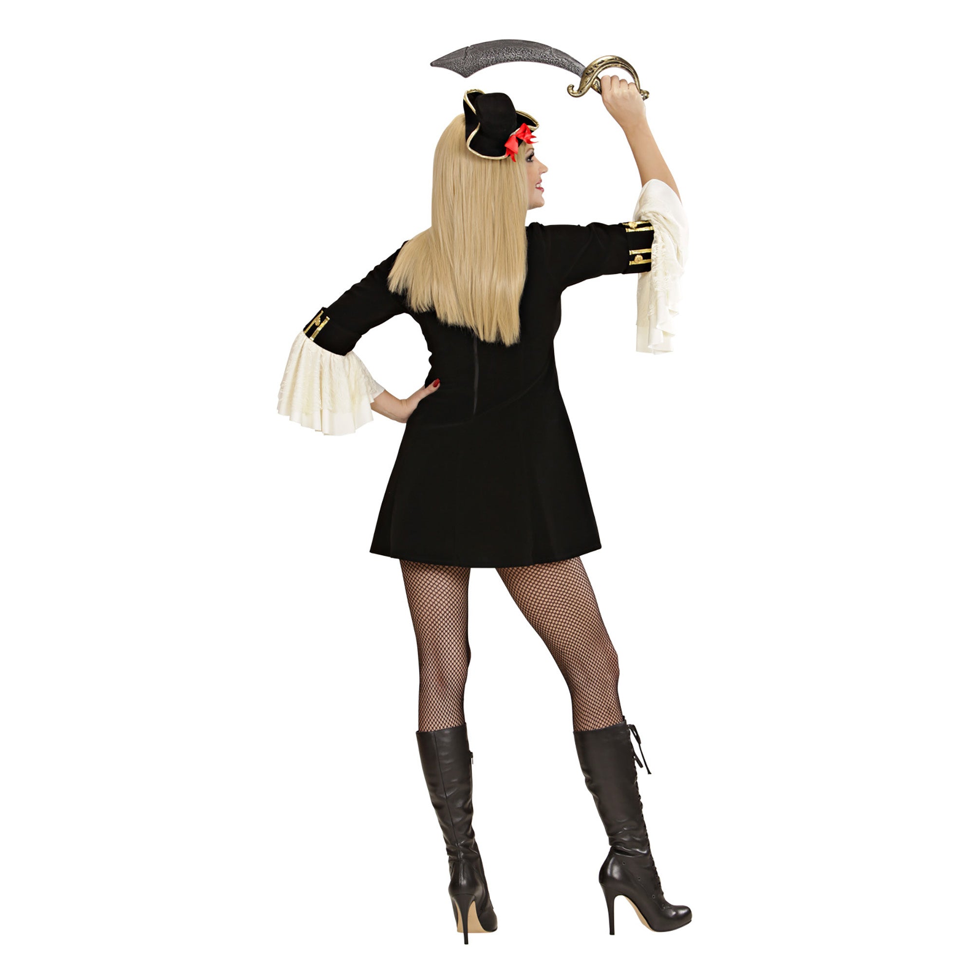 Omschrijving: piratenkapitein damesjurk met jasje, mini-hoornhoedje