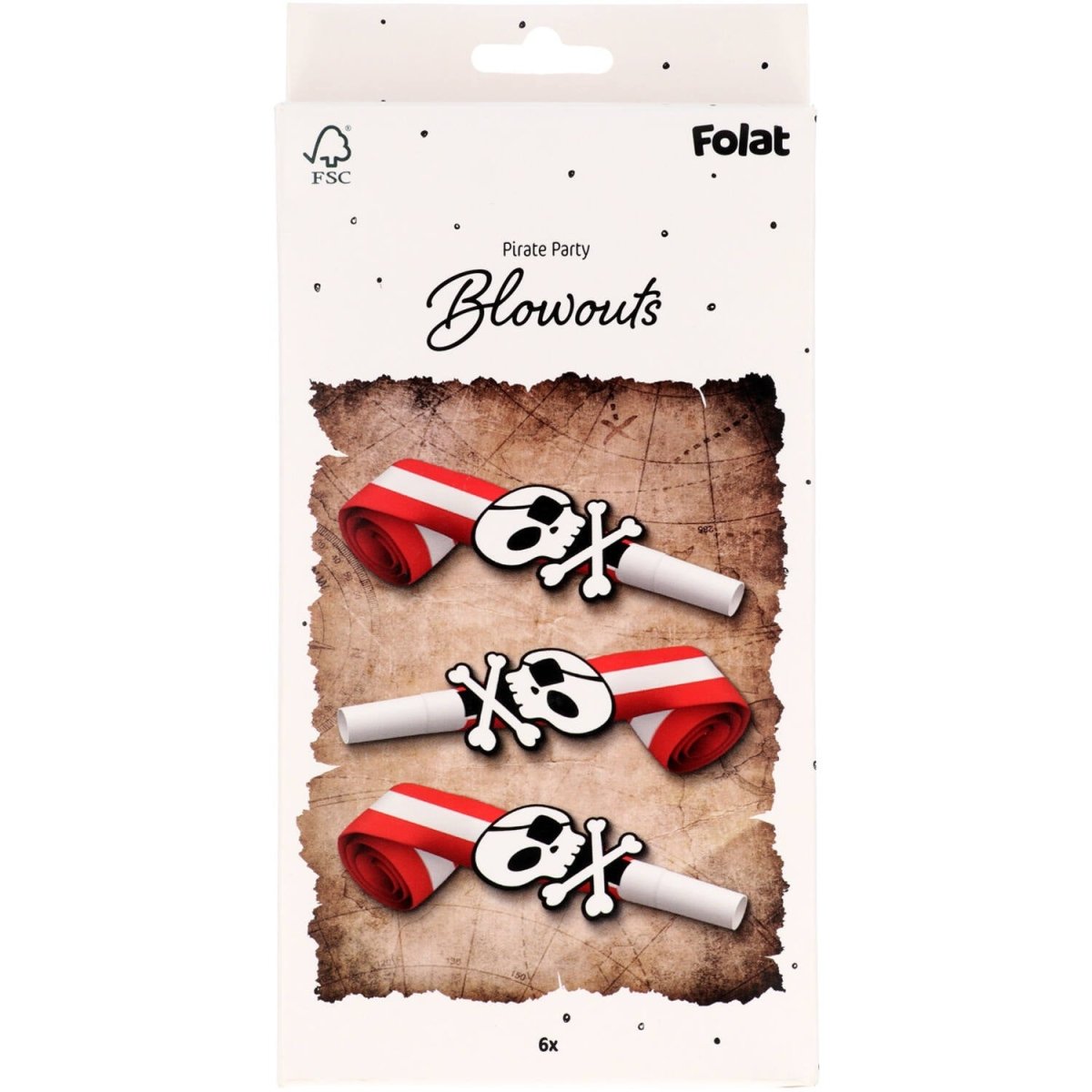 Vol blaasplezier op de zeven zeeën. Roltongen - Pirate Party - 6 stuks. Inhoud: 6 roltongen. Bijvoorbeeld te gebruiken tijdens de volgende feestgelegenheid/feestgelegenheden: Kinderfeestje, Verjaardag, Themafeest. Deze 6 spannende roltongen zijn bedrukt met een Pirat Party patroon en hebben een kartonnen doodskop als extra decoratie. Uitgerold zijn de roltongen ongeveer 40 cm. Het mondstuk is wit en 6 cm lang. Het rolgedeelte is 4 cm breed en 24 cm lang (uitgerold). Ingerold zijn de roltongen ongeveer 10 cm. Dit artikel is gemaakt van papier.