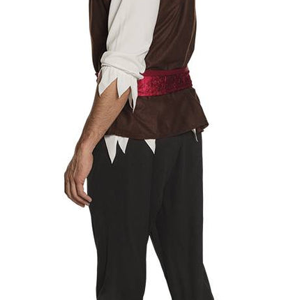 Inhoud: piraten hoofdband, shirt, jasje, riem, beenkappen en broek