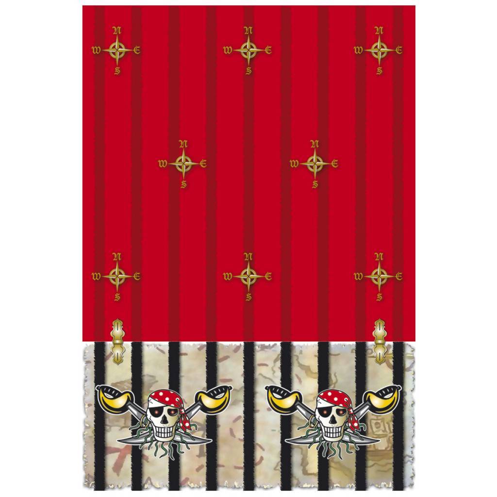 Rode Piraat piraten tafelkleed - 130x180 cm. Inhoud: 1 tafelkleed. Bijvoorbeeld te gebruiken tijdens de volgende feestgelegenheid/feestgelegenheden: Kinderfeestje. Het tafelkleed is 130x180cm. Het artikel is gemaakt van kunststof.