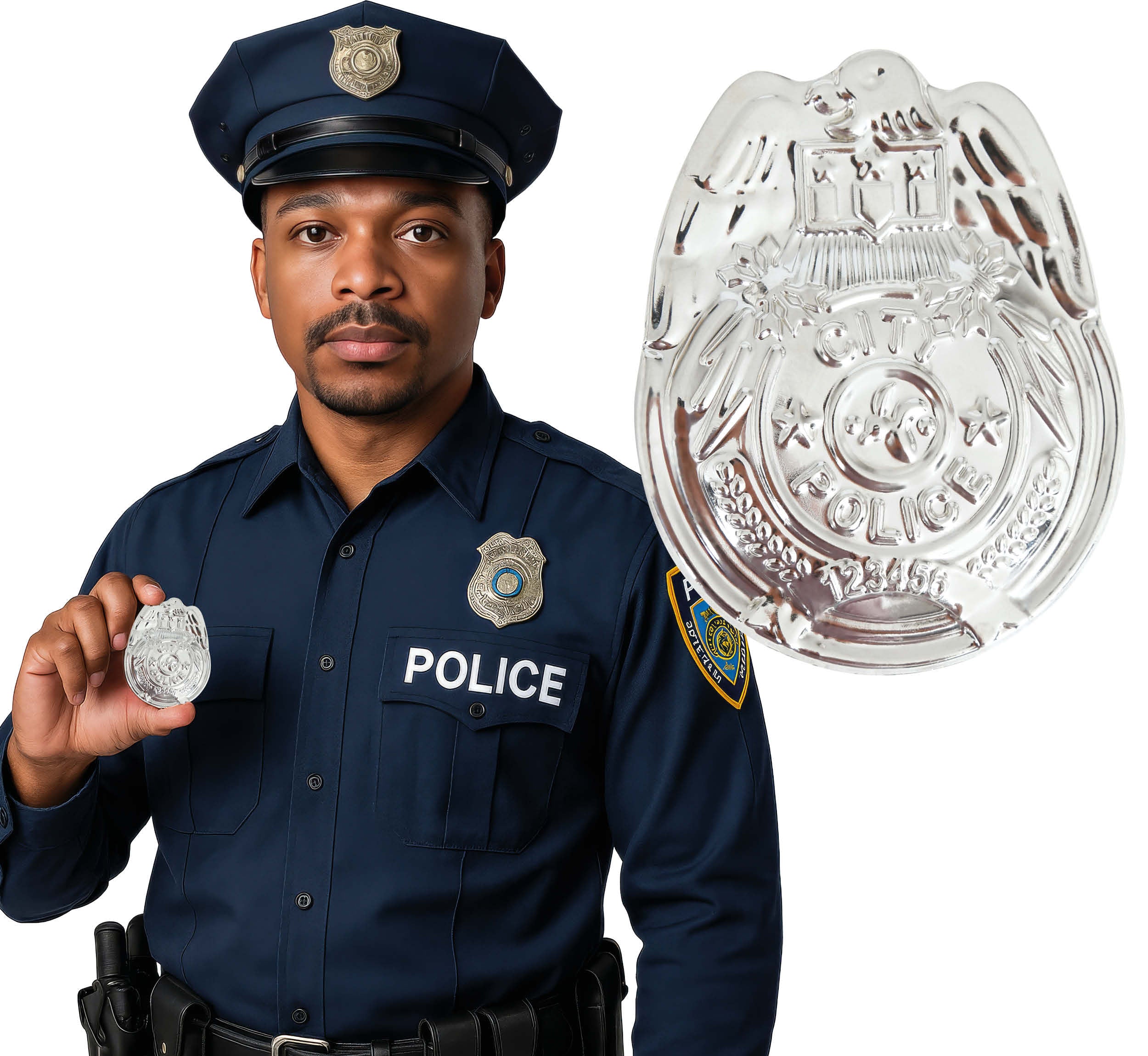 Deze zilverkleurige politiebadge is een leuke en herkenbare accessoire voor verkleedpartijen, carnaval of themafeesten. Door het compacte formaat en het klassieke ontwerp is de badge eenvoudig te combineren met diverse politie-outfits.