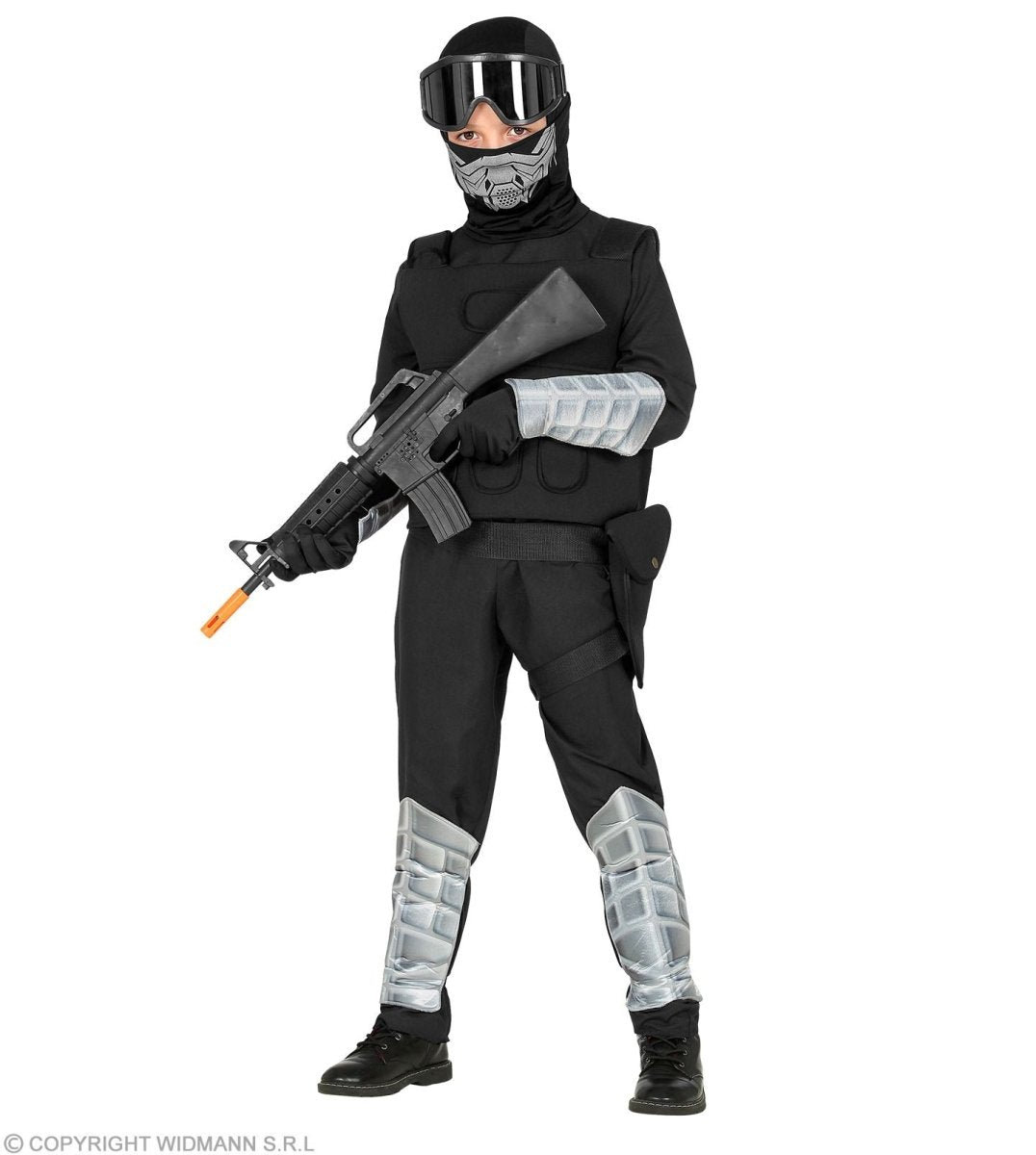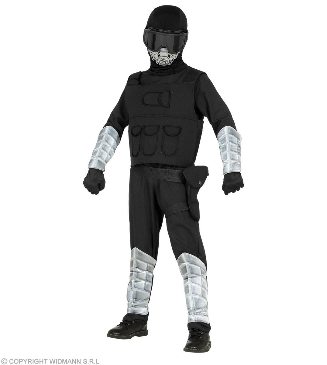 Inhoud: jumpsuit, vest, masker met capuchon, veiligheidsbril, riem met holster, armbeschermers, scheenbeschermers, handschoenen