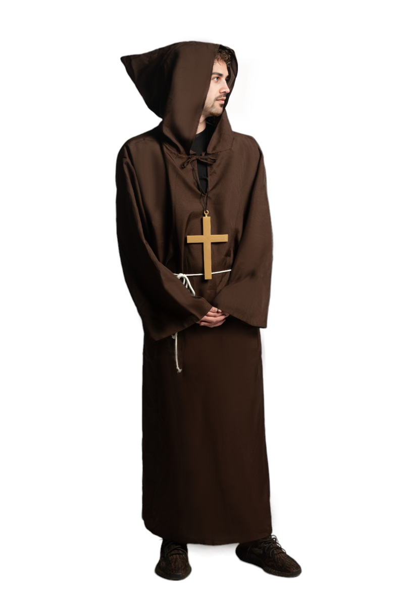 Dit bruine priester kostuum voor heren is een klassieke en herkenbare outfit voor carnaval, themafeesten en verkleedpartijen.