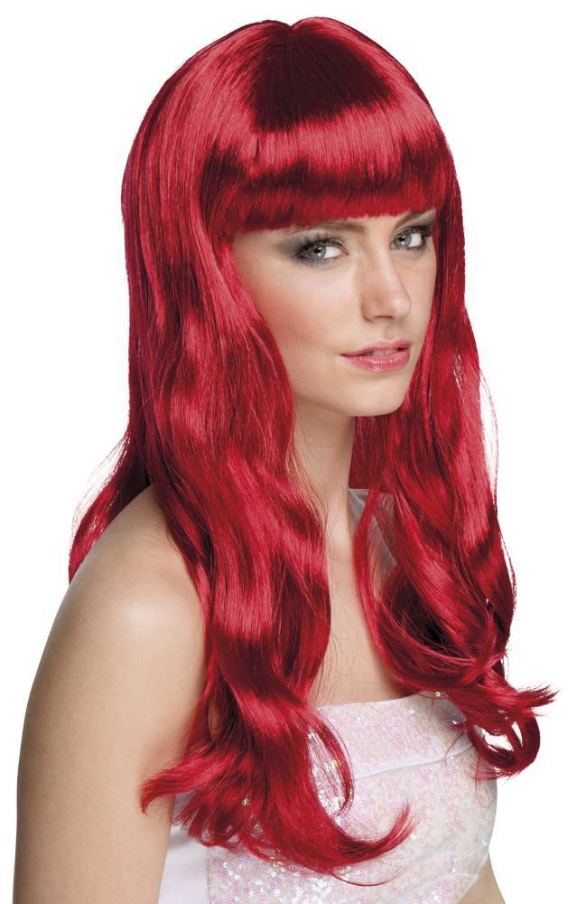 Verpakkingsinhoud: Pruik Lang Haar Robijnrood
