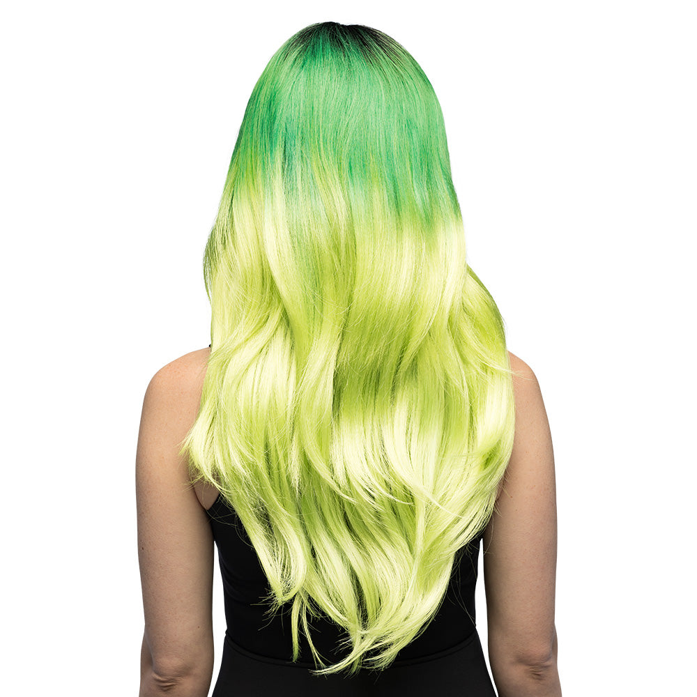 • Kleur: ombre van zwart naar smaragdgroen naar limoengroen