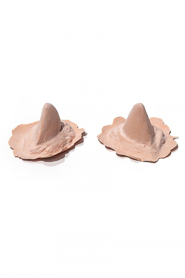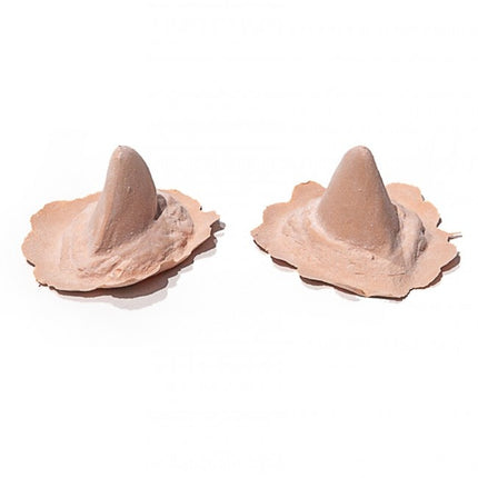 - Haal de latex prothese uit het doosje en plaats deze op de huid om te controleren of de randen goed aansluiten en om te bepalen waar de hoorn vastgelijmd moet worden.