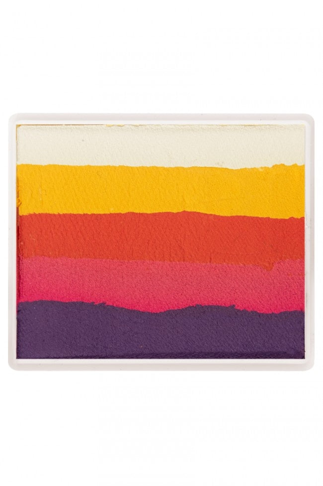 De Splitcake schmink van PXP Professional Colours biedt een samengestelde mix van verschillende kleuren waterschmink. Dit type schmink staat ook bekend als rainbowcake of colorblocks. De Splitcake schmink van partyXplosion bevat diverse kleuren waterschmink, netjes naast elkaar gepresenteerd in één doosje. Wanneer je met deze Splitcake schmink werkt, gebruik je de zogenaamde one stroke techniek.