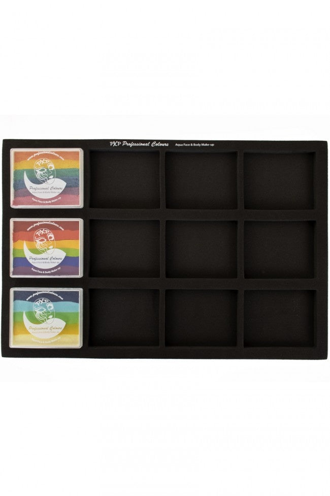 In deze handige tray van PXP Professional Colours kun je twaalf schminkpotjes van 50 gram splitcake schmink opbergen.