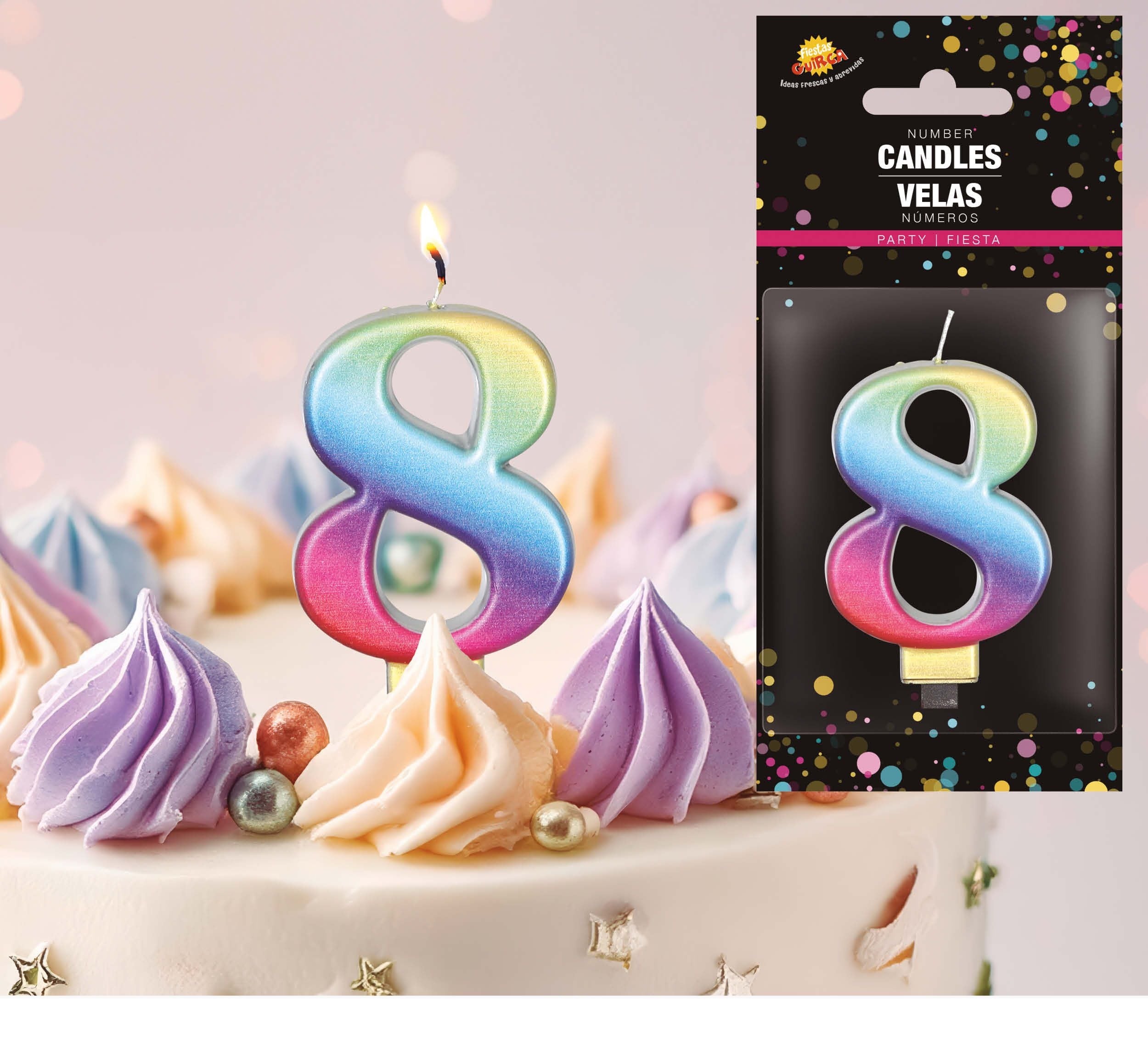 Regenboog Kaars 8 Jaar Metallic 8cm