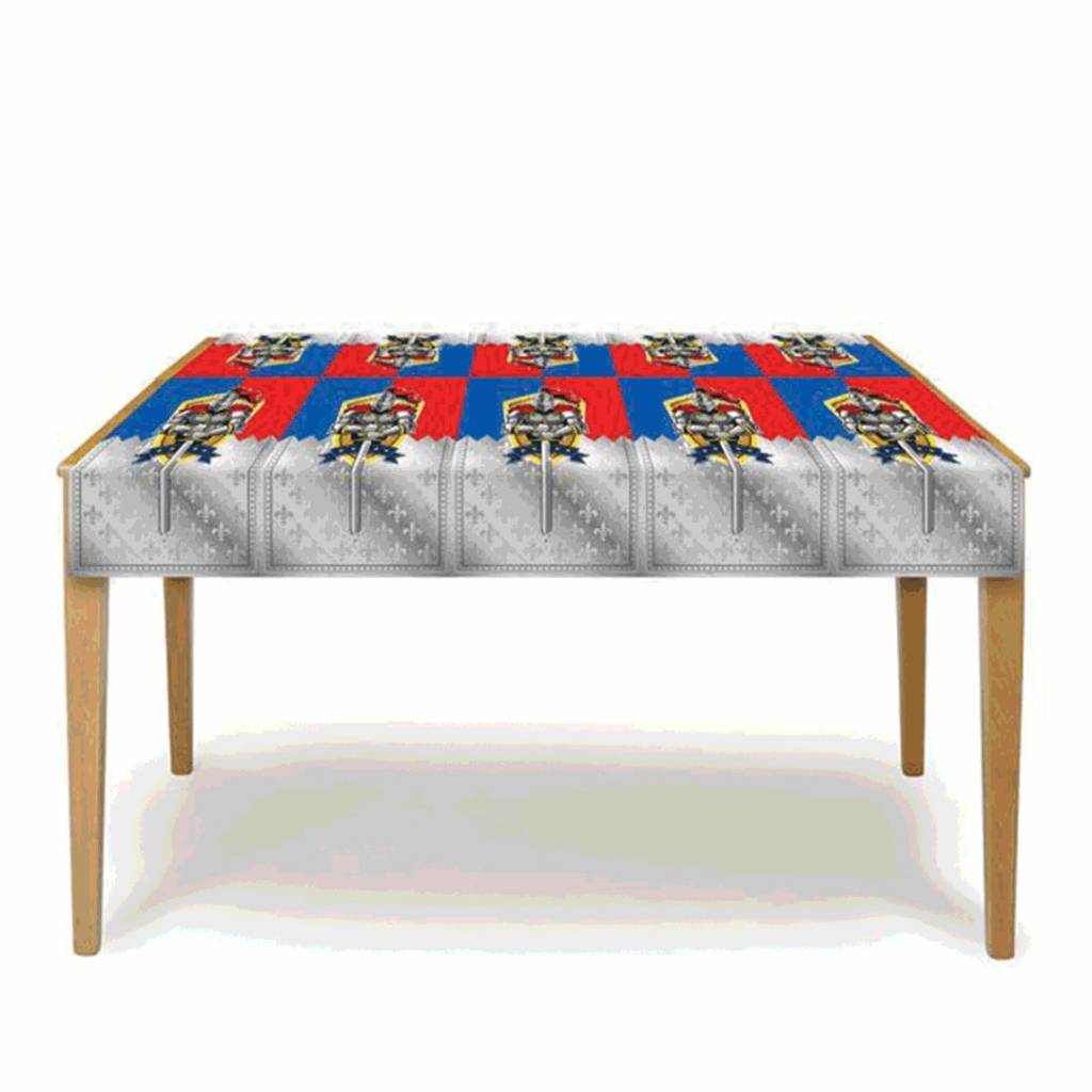 Ridder Reinier Tafelkleed 130x180cm. Inhoud: 1 tafelkleed. Kleur: Meerkleurig. Productthema: Ridder. Bijvoorbeeld te gebruiken tijdens de volgende feestgelegenheid/feestgelegenheden: kinderfeestje. Het tafelkleed is 130x180cm. Het artikel is gemaakt van kunststof.