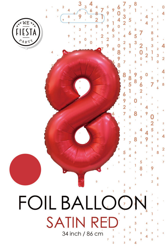 Rode Cijfer Ballon 8 Jaar Glans 86cm