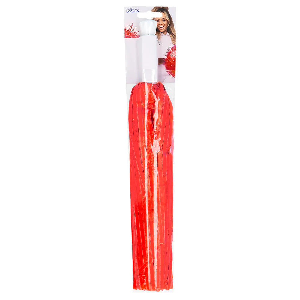 Hup team hup! Of je nu op een feestje, een evenement of thuis een wedstrijd aan het kijken bent, deze vrolijke rode pompom zorgt voor een extra dosis energie. De pom-pom heeft een felle rode kleur met een wit handvat. Super leuk als accessoire bij een sportieve outfit of cheerleader kostuum voor carnaval of een themafeest.