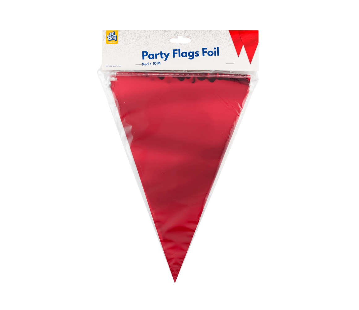 Met de party flags foil - red uit de Basic collectie van Paper Dreams haal je een kwalitatieve rode vlaggenlijn in huis voor een scherpe prijs. De vlaggenlijn is 10 meter lang.