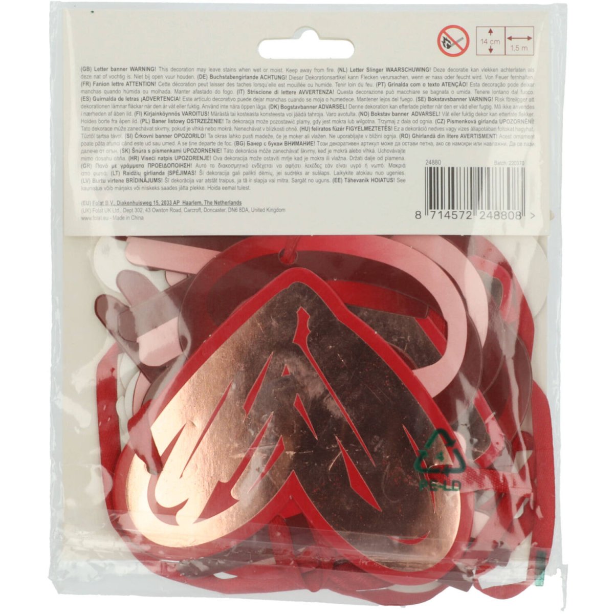 Rood Roze Letterslinger Love You Lots 1,50m 2st
