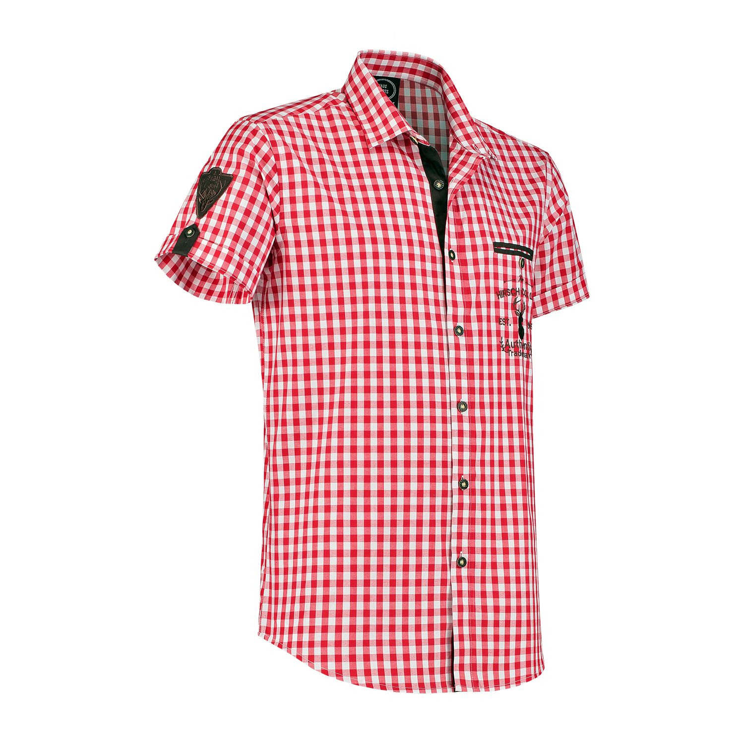 Rood Witte Blouse Heren Korte Mouw Traditioneel Geruit