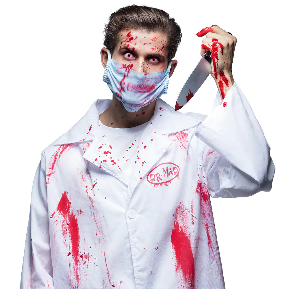 Met Halloween mag het bloederig worden, dus deze lenzen zijn een perfect accessoire voor bij het horror dokter kostuum. De witte lenzen hebben bloedspetters en zijn daardoor perfect te combineren met nog meer nepbloed op je Halloween kostuum. Niet alleen leuk voor dokter Killer, maar ook voor bij een evil zusterpakje.Het zijn zachte weeklenzen zonder sterkte.