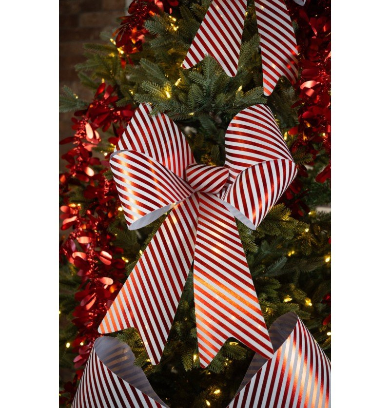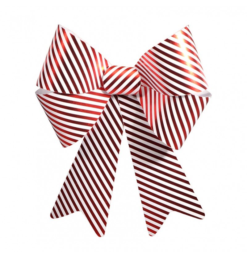Breng een vrolijke en feestelijke sfeer in je decoraties met deze grote PVC strik met snoepstrepen. Het opvallende formaat en de klassieke rood-witte strepen maken deze strik ideaal voor kerstversieringen en cadeaus.