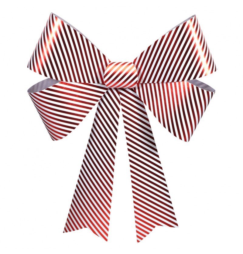Breng een vrolijke en feestelijke touch aan je decoraties met deze extra grote PVC strik met snoepstrepen. Het royale formaat en de klassieke rood-witte strepen maken deze strik perfect voor kerstversieringen, cadeaus of feestdecoratie.