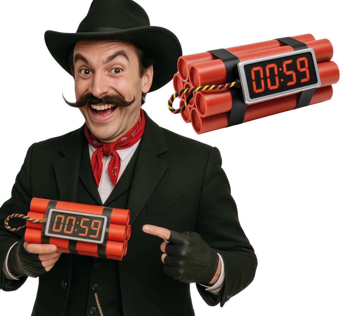 Maak je verkleedoutfit of themafeest compleet met deze rood-zwarte nepdynamiet. Ideaal als decoratie of als accessoire bij uiteenlopende kostuums.
