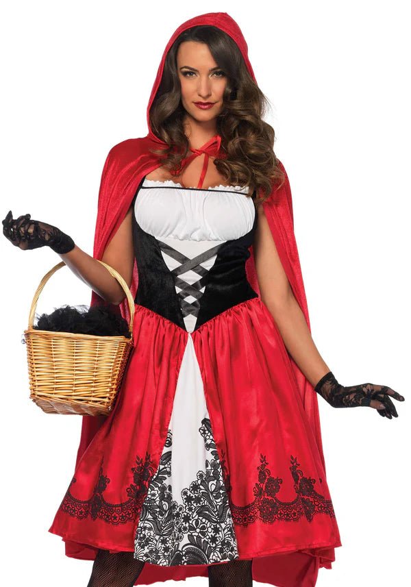 Word de betoverende heldin van het bos met het 2-delige Classic Red Riding Hood kostuum van Leg Avenue! Deze set bevat een boerinnen jurk tot over de knie met een brokaat print op de rok en een rits op de rug, gecombineerd met een fluwelen hooded-cape voor de klassieke Sneeuwwitje look. Perfect voor Halloween, sprookjesfeesten of als je de wereld van het bos in wilt stappen! 🍄✨