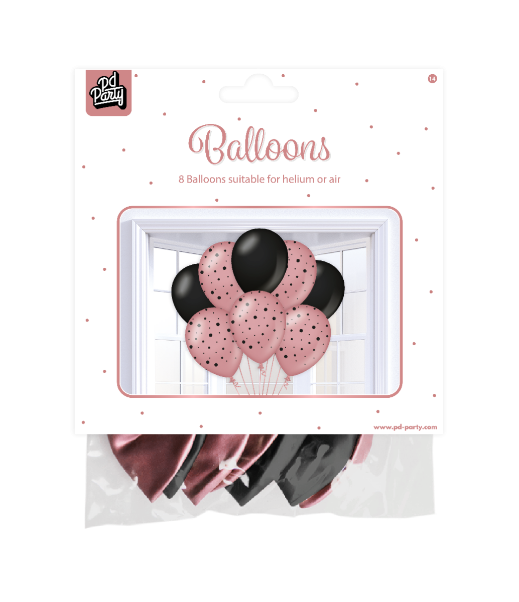 Rose Goud Zwarte Ballonnen 30cm 6st