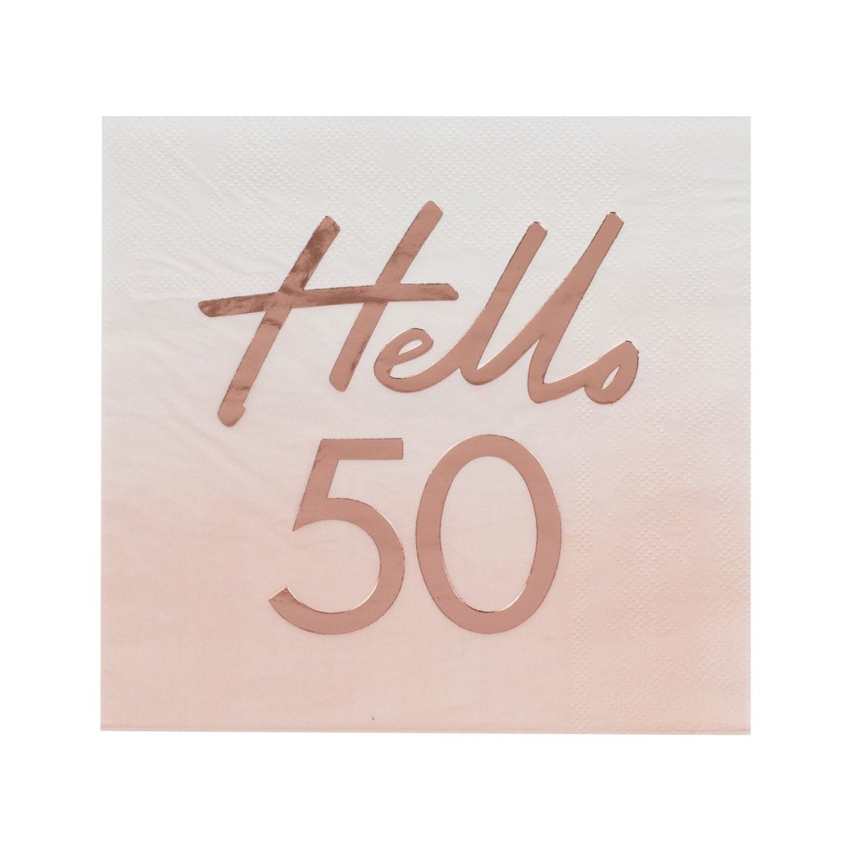 Vier je mijlpaalverjaardag in sprankelende stijl met deze fantastische roségouden 50e verjaardagsservetten. De roségouden folie zal schitteren terwijl je de hele nacht feest - gebruik in combinatie met onze hello 50-ballonnen voor een vrolijk 50e verjaardagsfeest!