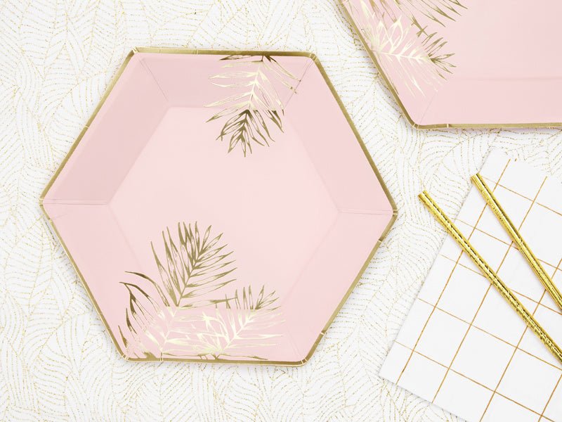 Roze Borden Gouden Bladeren 23cm 6st