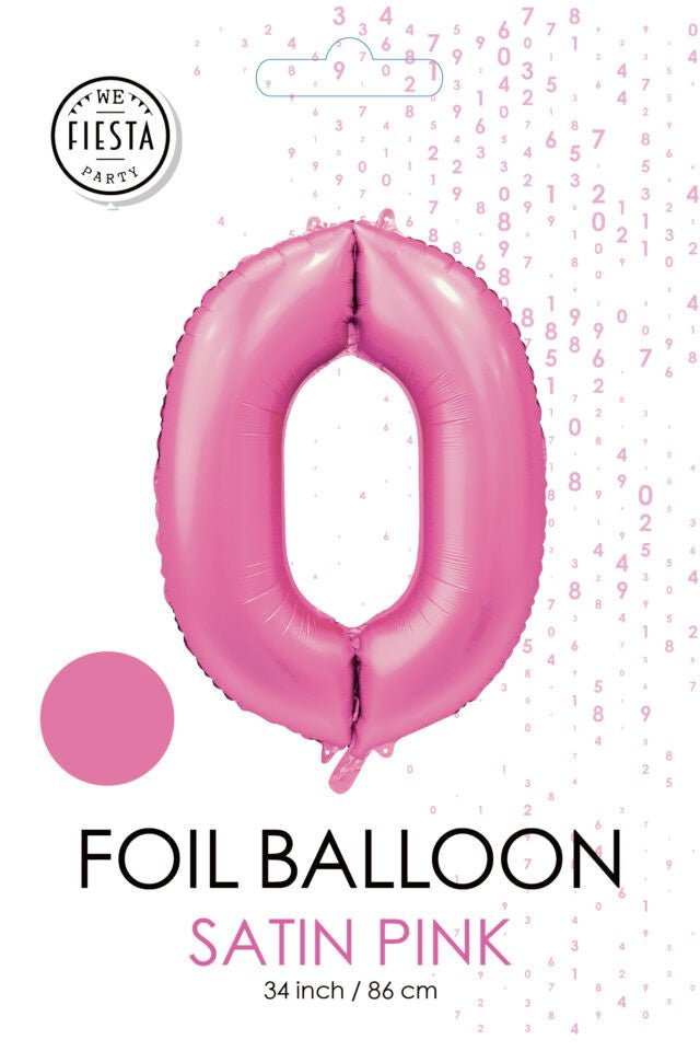 Roze Cijfer Ballon 0 Jaar Glans 86cm