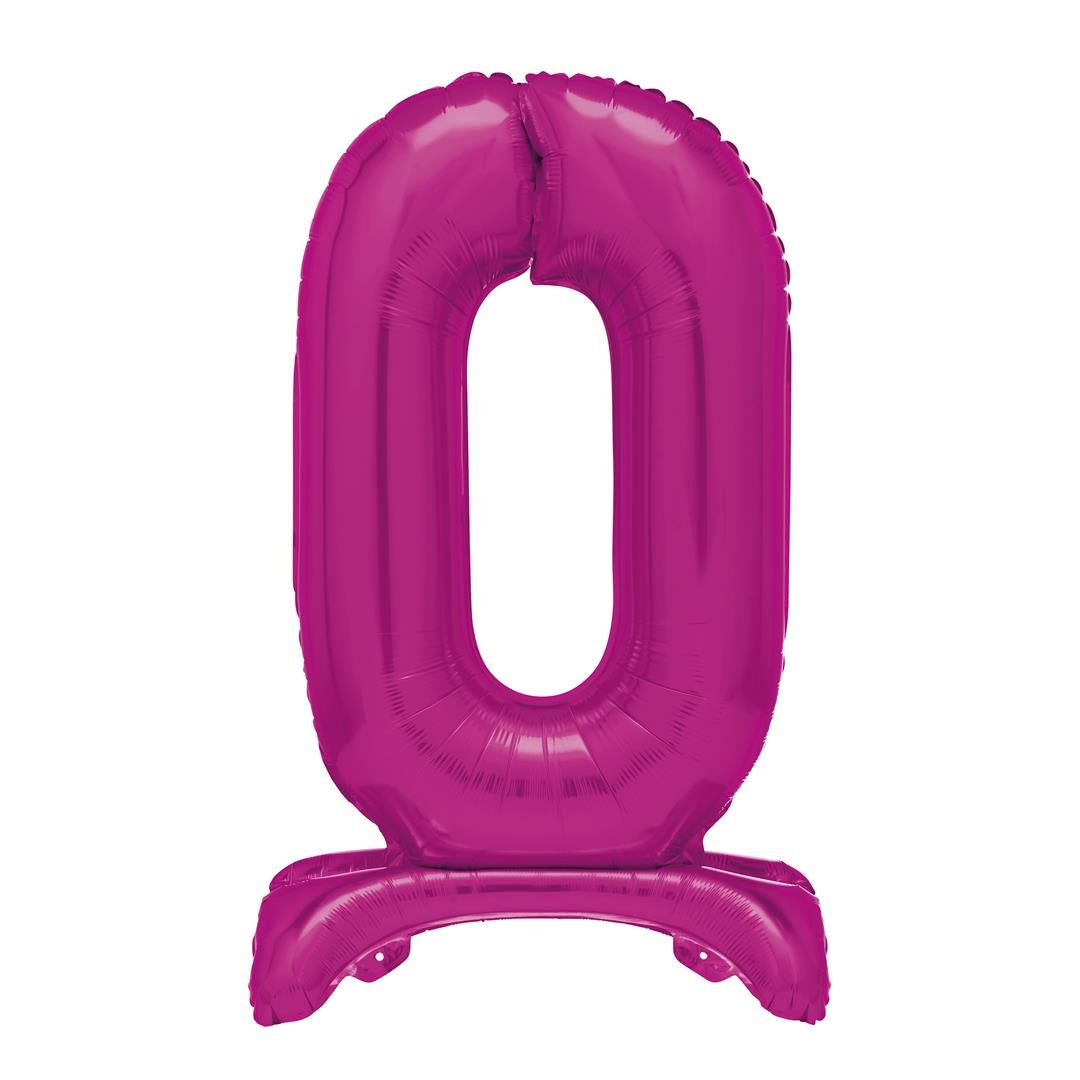 Roze Cijfer Ballon 0 Jaar Met Standaard 76cm