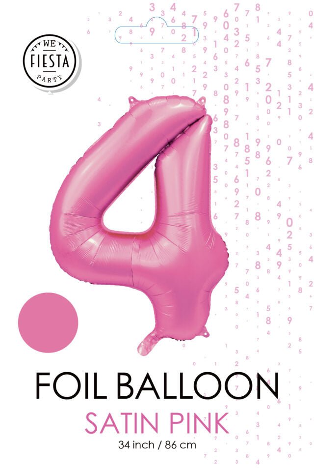 Roze Cijfer Ballon 4 Jaar Glans 86cm
