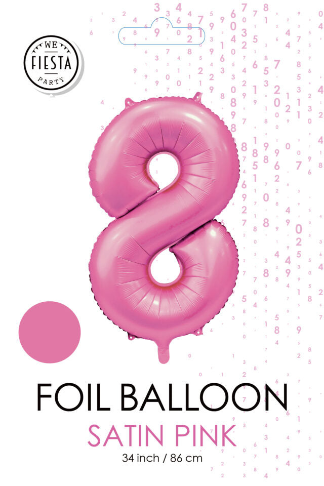Roze Cijfer Ballon 8 Jaar Glans 86cm