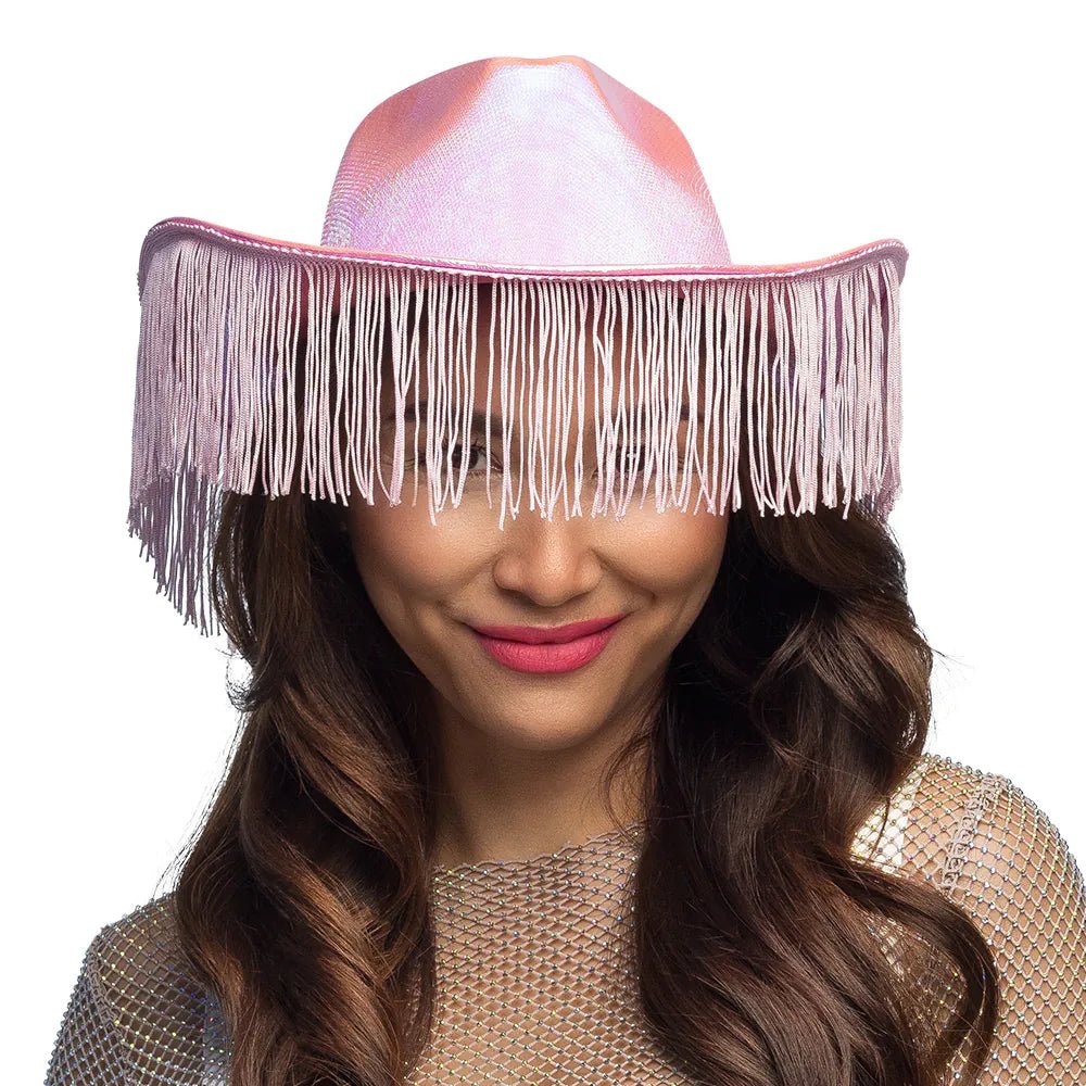 Deze roze hoed is niet alleen heel leuk als toevoeging op een Western kostuum voor carnaval, het is ook te gek als finishing touch voor naar een hip festival of voor de bride-to-be tijdens haar vrijgezellenfeest. Deze glimmende cowboyhoed heeft een glamoureuze en stoere uitstraling waardoor hij voor diverse gelegenheden gebruikt kan worden en een outfit helemaal compleet kan maken!
