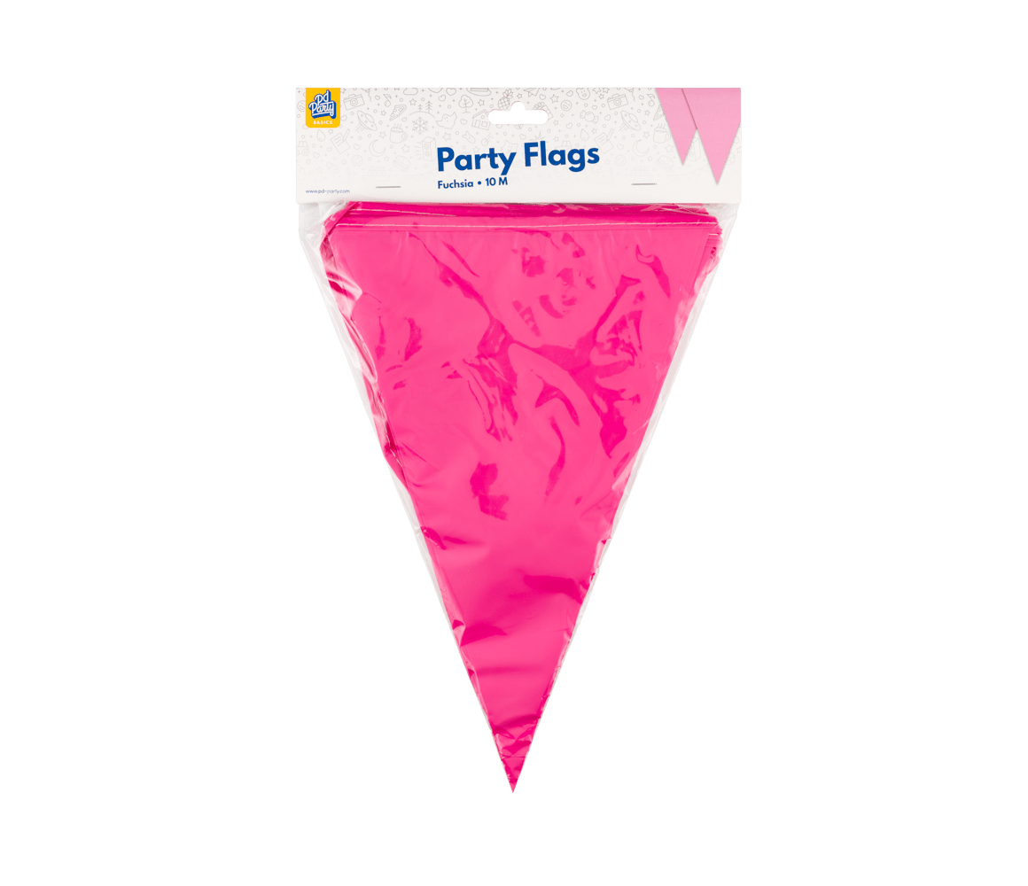 Met de party flags PE - fuchsia uit de Basic collectie van Paper Dreams haal je een kwalitatieve fuchsia kleurige vlaggenlijn in huis voor een scherpe prijs. De vlaggenlijn is 10 meter lang. De vlaggetjes zijn gemaakt van Polyetheen (PE) en zijn gemakkelijk op te hangen.