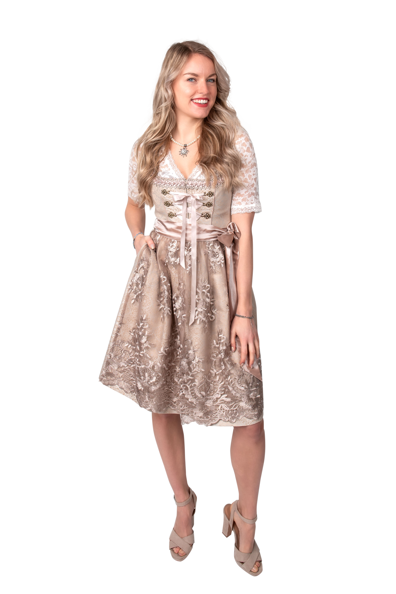 Roze Wit Creme Dirndl Jurk Oktoberfest Dames Jaquard