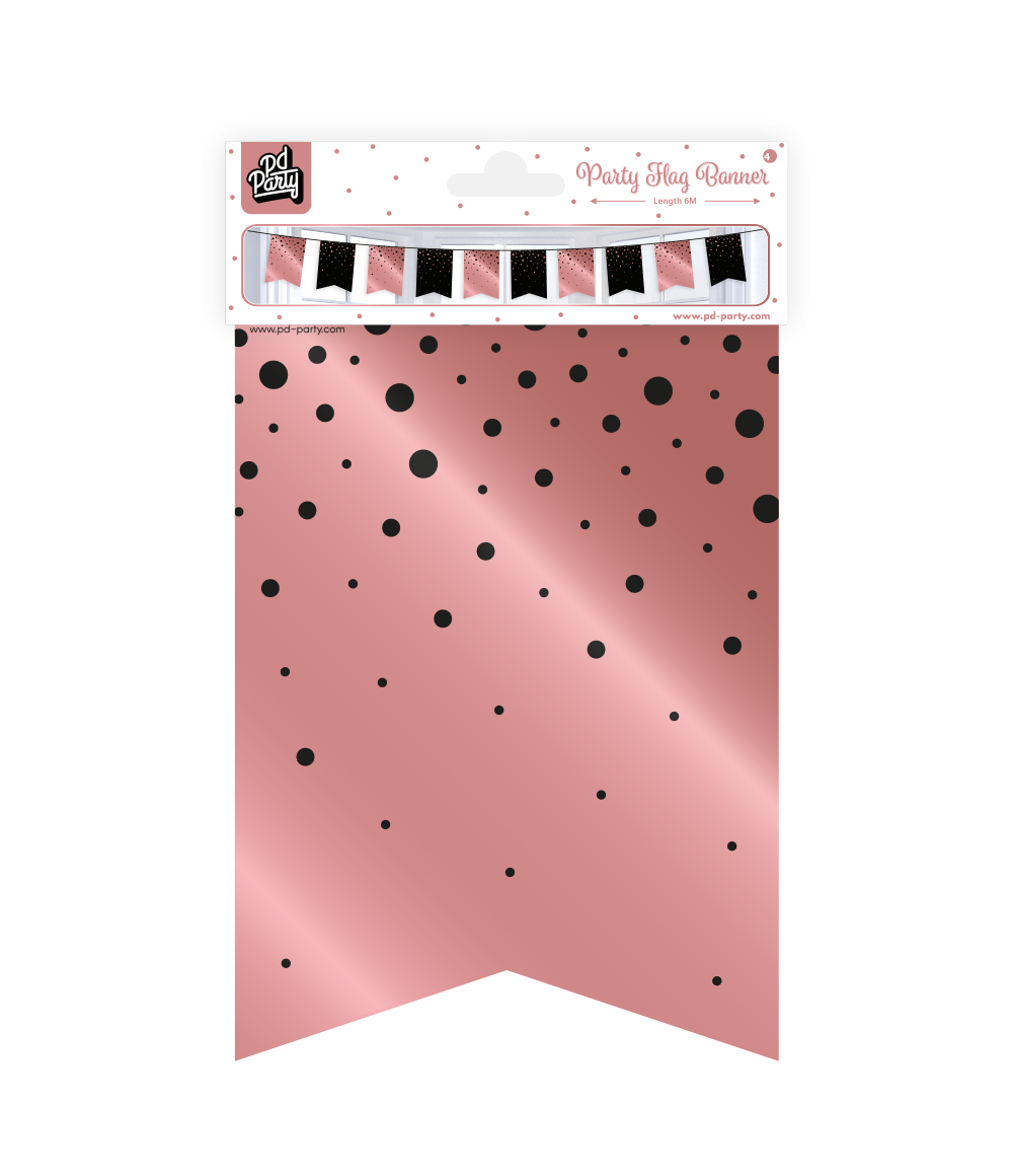 Deze roségoud met zwarte vlaggetjes geven jouw feestje extra glamour, en mogen niet ontbreken op een Rosegold/Blackparty!