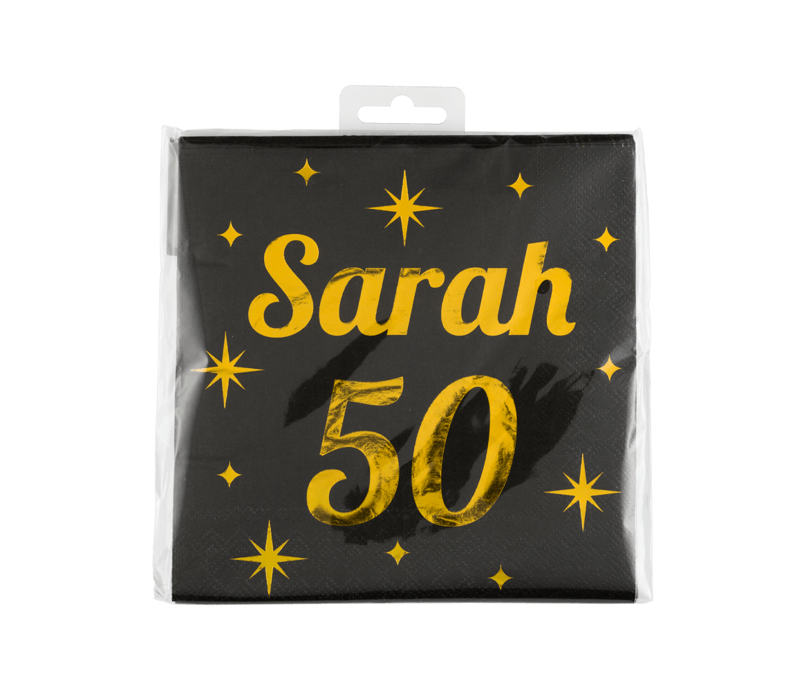 Sarah Servetten Zwart Goud 50 Jaar 19cm 16st