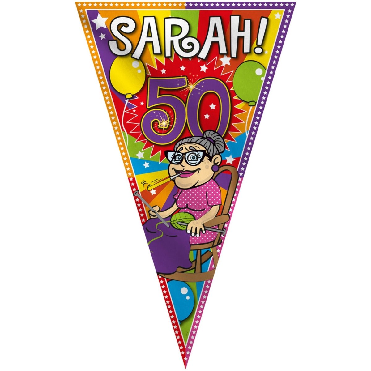 50 Jaar Sarah Knalfeest Mega Vlag 100x150. Inhoud: 1 vlag. Kleur: Meerkleurig. Bijvoorbeeld te gebruiken tijdens de volgende feestgelegenheid/feestgelegenheden: Themafeest, Verjaardag. Afmetingen van dit artikel: 100x150cm. Dit artikel is gemaakt van polyester.