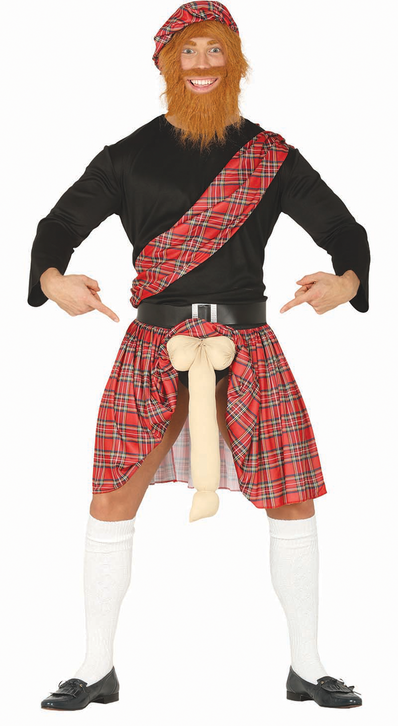 Inhoud: hoed met baard, hemd, riem, penis, rok