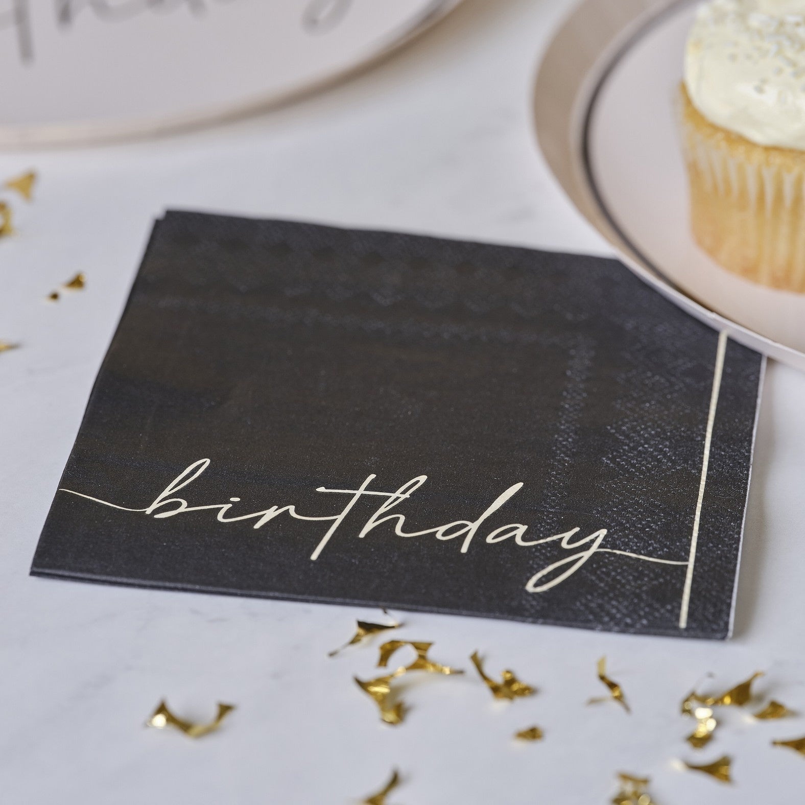 Dit prachtige ontwerp zal er fantastisch uitzien op je verjaardagsfeestje. Combineer deze cocktailservetten met bijpassend feestservies uit onze Champagne Noir-collectie.