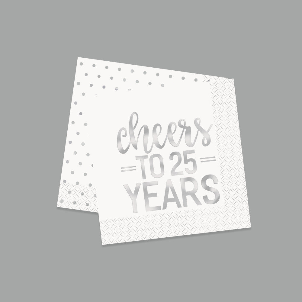 Servetten Cheers To 25 Year Zilver 25cm 16st