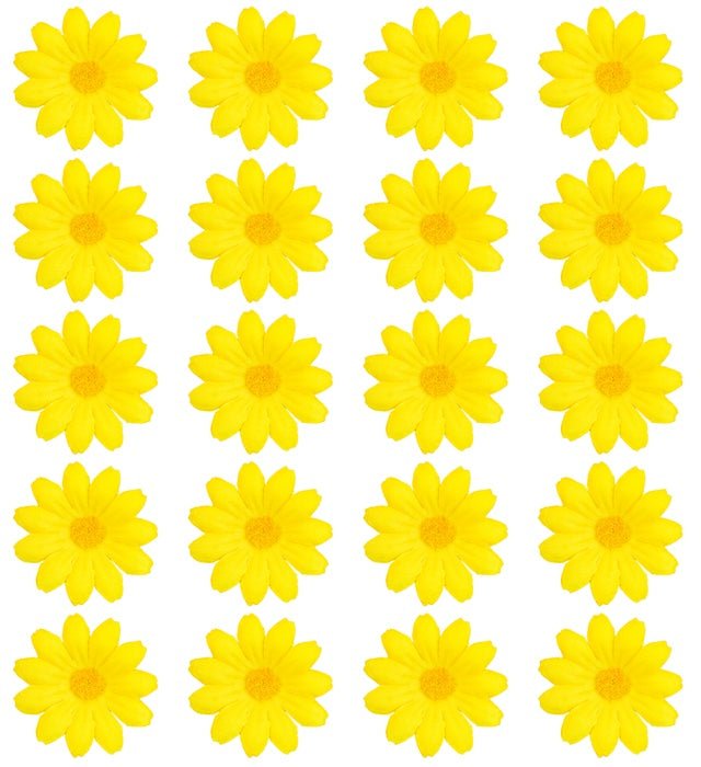 Voeg een frisse en vrolijke sfeer toe aan decoraties en creatieve projecten met deze set van 20 decoratieve gele bloemen. Perfect voor feestdecoratie, knutselwerk of thematische aankleding.